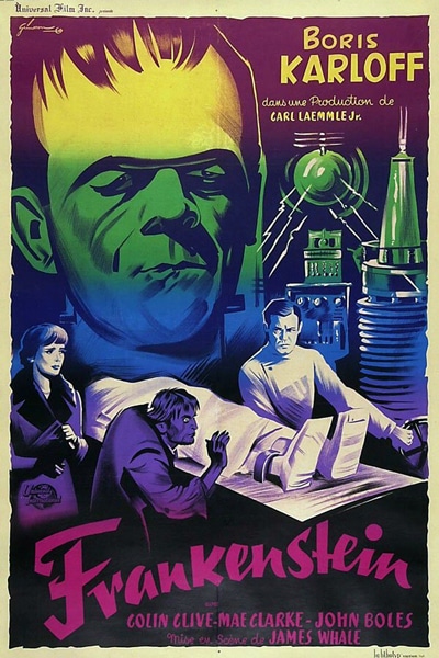 États-Unis, 1931. Drame d’horreur de James Whale avec Boris Karloff, Colin Clive, Dwight Frye. Un médecin fabrique un monstre en utilisant les membres de divers cadavres, puis lui donne vie en concentrant les forces électriques de la foudre au cours d’un orage.