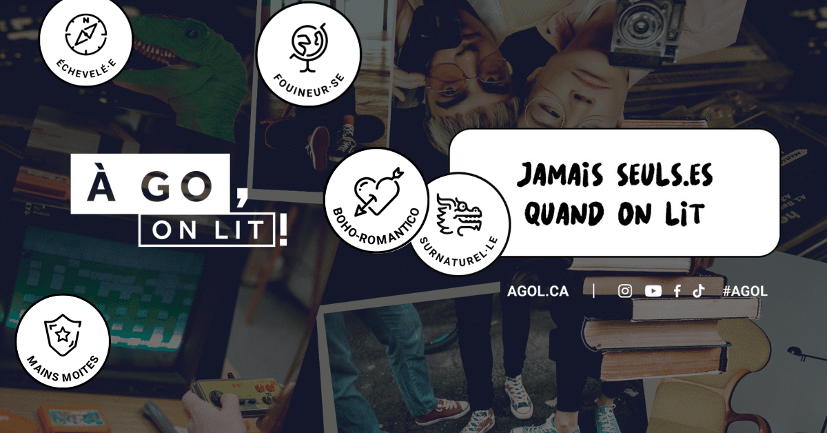 À GO, on lit!, ou AGOL pour les intimes, est un mouvement dédié au plaisir de lire chez les ados et jeunes adultes. Les jeunes sont invités à remplir un quiz ludique afin de connaître leur profil de lecteur et lectrice selon cinq catégories : Boho-Romantico, Échevelé.e, Fouineur.se, Mains moites et Surnaturel.le. Les jeunes peuvent par la suite consulter des suggestions de lecture selon leurs intérêts.