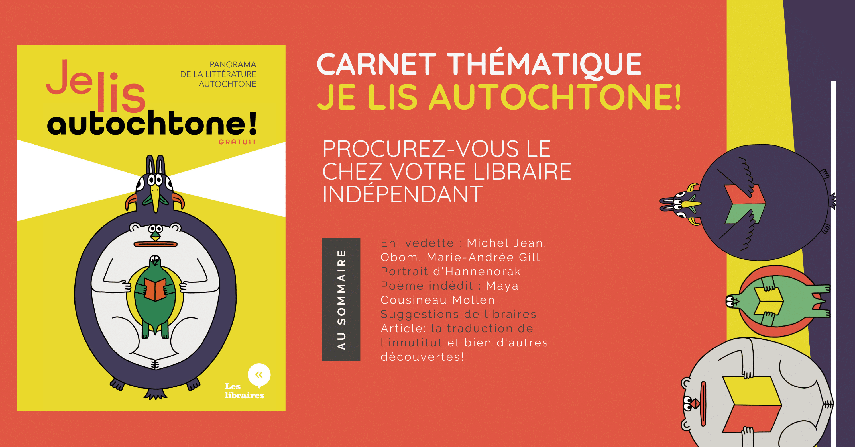 Le réseau Les libraires est fier d'offrir gracieusement un carnet thématique sur les littératures autochtones, dans toutes les librairies indépendantes membres de son réseau ainsi que dans les bibliothèques publiques du Québec. La version en ligne est disponible ici, alors que la version papier est offerte depuis le lundi 7 juin 2021. Conçu en partenariat avec des membres des Premières Nations, ce carnet vous propose une foule de suggestions de lectures, de conseils de libraires, d'entrevues et de portraits. Cinquante-deux pages pour découvrir la richesse des littératures des peuples autochtones! Découvrez ci-dessous le mot d'introduction dudit carnet.