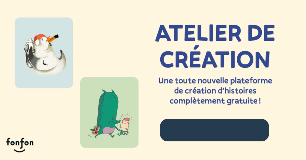 Véronique Fontaine, à la tête des éditions Fonfon, a de l’énergie à revendre et des idées sans cesse foisonnantes. Celle qui a déjà imaginé les vélos-conte, soient trois vélos stationnaires dont l’action du pédalier permettait à un trio de lecteurs de faire avancer une histoire numérique (oui oui!), met cette fois sur pied un projet dont tous les professeurs, parents et enfants raffoleront : l’Atelier de création Fonfon.
