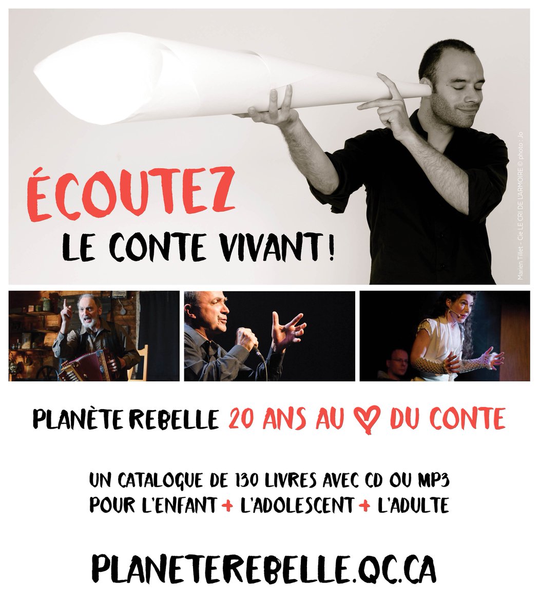 On trouve encore sur les étagères déjà bien fournies des Éditions Planète rebelle d’autres collections et séries. Il faut souligner plusieurs expériences narratives qui, si elles ne sont pas tant du registre du conte, partagent avec celui-ci l’hommage à la parole, tant du côté de la poésie que de celui des arts de la parole, inaugurant, au moyen du CD-ROM, du CD audio ou du DVD, les possibilités du multimédia et faisant du livre, comme support d’accueil, un vaste rendez-vous de formes et de modes d’expression : pas si loin du conte, au moins complice avec celui-ci dans la connivence du récit parlé. Vous pouvez consulter notre catalogue sur notre site Web www.planeterebelle.qc.ca/fichiers/PR_catalogue20172018.pdf.