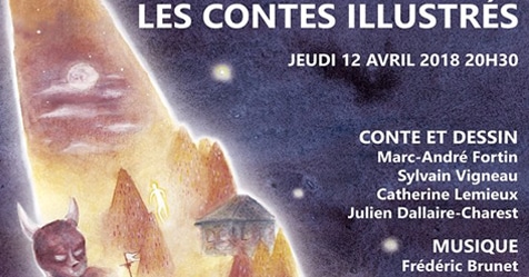 Profitant de la tenue du Festival Québec BD qui se déroulera du 11 au 15 avril prochains, l’organisme Parenthèses 9, dont la mission est de placer la bande dessinée dans un contexte inusité, atteint encore une fois sa cible en proposant la soirée Les contes illustrés. Amalgamant l’univers du conte à celui du dessin, l’activité qui se déroulera entre les murs du Musée de la civilisation à Québec, accueillera sur scène les conteurs Marc-André Fortin et Sylvain Vigneau et les illustrateurs Catherine Lemieux et Julien Dallaire-Charest. Le musicien Frédéric Brunet sera aussi des leurs pour faire vivre et déployer l’ensemble qui a été créé par les artistes sous la direction du metteur en scène Jean-Michel Girouard.