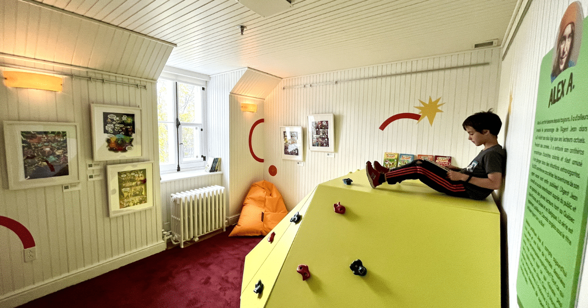 Cette exposition se déploie au Centre d’interprétation historique de Sainte-Foy. C’est l’occasion pour le centre de créer des ponts entre les artistes d’hier et ceux et celles d’aujourd’hui et de faire découvrir leur parcours aux enfants comme à leurs parents. Ainsi, on y retrouvera des coins de lecture inspirés des œuvres d’Alex A., d’Hélène Desputeaux et d’Obom. D’ailleurs, l’une des salles de l’expo, nommée la salle Obom, est consacrée à la littérature autochtone. Les enfants pourront explorer les univers des auteurs et des autrices, des illustrateurs et des illustratrices, et savourer toutes les différences qui les caractérisent. Dans cette exposition qui aborde des thématiques actuelles, telles que la vie intérieure, le féminisme et l’environnement, le matériel et les éléments de décor sont majoritairement recyclés. Le deuxième étage de l’édifice est consacré à la lecture et à l’imagination. On y invite les enfants à réaliser leurs propres créations.