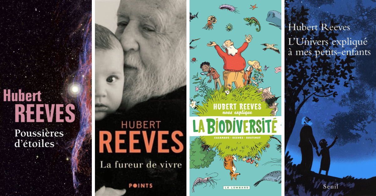 Hubert Reeves était, à ses débuts, l’un des seuls astrophysiciens de langue française. Il est ainsi à l’origine de plusieurs carrières scientifiques au Québec et a donc contribué à l’importance que prend aujourd’hui la science dans nos vies. Auteur de plusieurs livres, il a été l’un des premiers à faire de la vulgarisation scientifique. Ses ouvrages Patience dans l’azur, publié en 1981, et plus tard Poussières d’étoiles, se sont imposés comme des livres majeurs autant auprès de ses pairs que du public néophyte. Suivront notamment Mal de Terre, qui témoigne de son inquiétude face aux changements climatiques, Le banc du temps qui passe et La fureur de vivre, plutôt axés sur ses réflexions sur la vie et la nature. Ses mémoires, eux, sont parus en 2008 sous le titre Je n’aurai pas le temps. Ses deux derniers livres, des ouvrages collectifs, sont La Terre vue du cœur et L’océan vu du cœur. Il a aussi écrit quelques livres pour enfant, dont les plus récents sont offerts en trois tomes dans la série Hubert Reeves nous explique, soit La biodiversité, La forêt et Les océans. Par le passé, il avait également publié La mer expliquée à nos petits-enfants, et dans la même collection, L’Univers expliqué à mes petits-enfants.