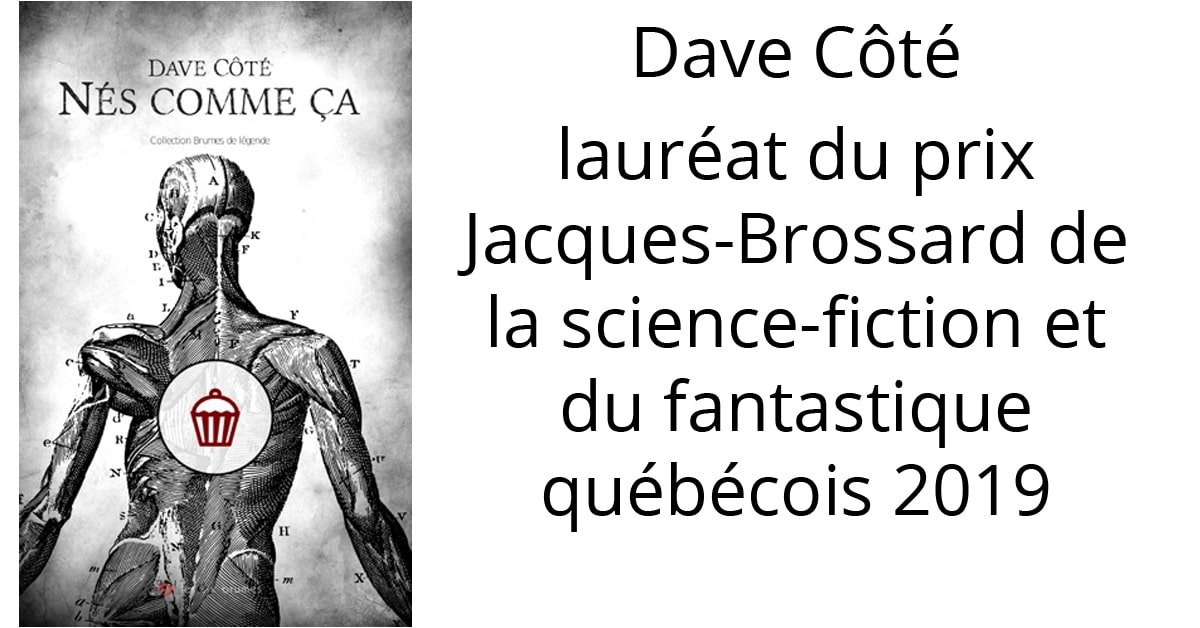 Le prix Jacques-Brossard de la science-fiction et du fantastique québécois 2019 a été remis à Dave Côté pour son recueil de nouvelles Nés comme ça publié aux éditions Six brumes ainsi que pour ses nouvelles « Ma station de métro » publiée dans la revue Solaris (numéro 206) et « Dans un bol » publiée dans la revue Brins d’éternité (numéro 50).
