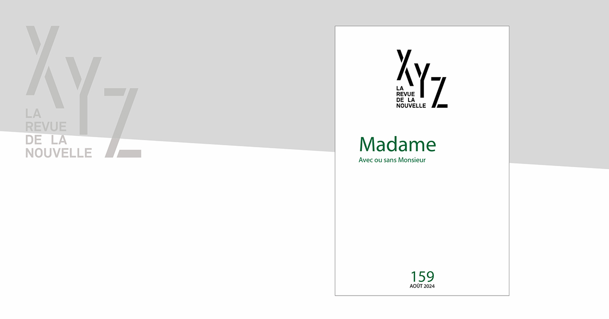 Le numéro 159 de XYZ. La revue de la nouvelle, paru en août dernier, avait pour thème « Madame ». Des textes de Charlotte Beaudoin-Pelletier, Louise Desjardins, Kari Guillemette, Suzanne Jacob, Rachel Leclerc, Sylvie Massicotte, Laurence Pelletier et Suzanne Viot se partageront différentes visions de cette Madame, jeune, vieille, émancipée ou pas. On pourra également savourer des textes de Pierre-Marc Asselin, Philippe Gingras et Mélissa Verreault, en plus de découvrir les commentaires de différents recueils de nouvelles, publiés récemment.