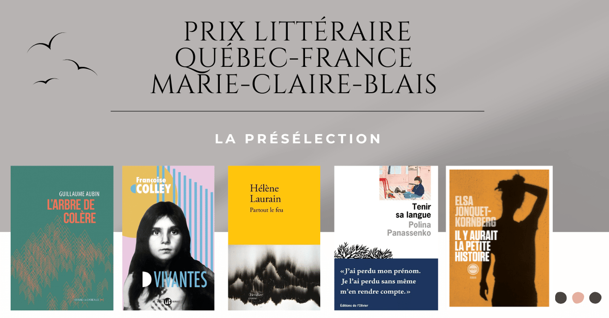 Créé en 2005 par Claude Lizé et le Comité Culture de l’Association Québec-France et parrainé par la regrettée Marie-Claire Blais, le prix littéraire Québec-France Marie-Claire-Blais récompense un auteur français pour son premier roman écrit en langue française. Le jury de présélection optera pour trois finalistes au printemps prochain. Ces finalistes seront ensuite soumis aux votes des comités de lecture des Associations du Réseau Québec-France/francophonie, qui comptent une centaine de lecteurs assidus partout dans la province.