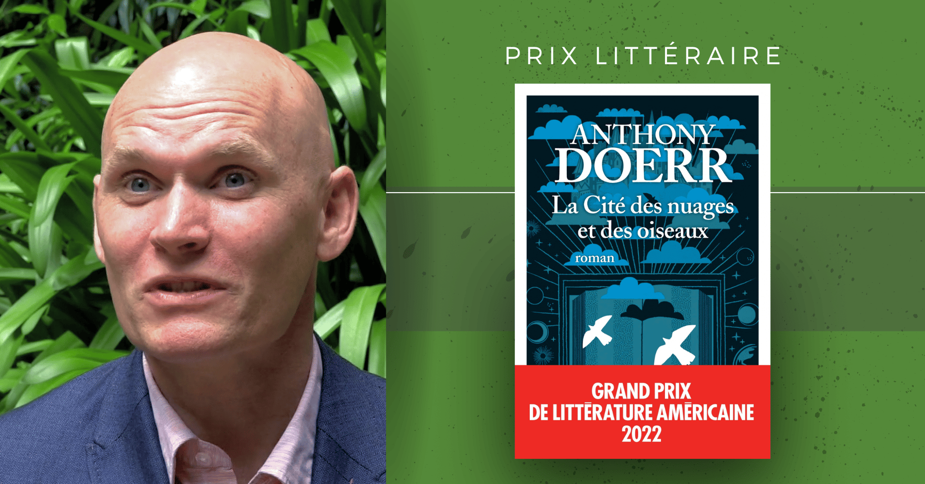 Anthony Doerr succède à Joyce Maynard, qui a reçu le prix en 2021 pour son livre Où vivaient les gens heureux, publié chez Philippe Rey. Il avait auparavant reçu le prix Pulitzer en 2015 pour son roman Toute la lumière que nous ne pouvons voir.