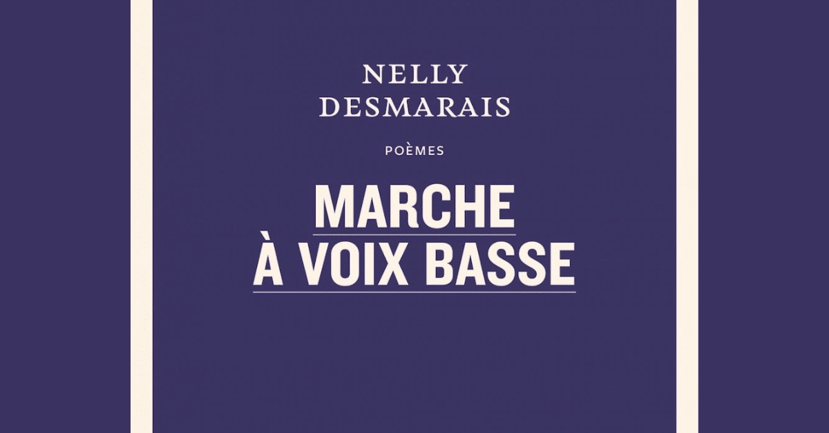 Publié chez Le Quartanier, Marche à voix basse est le premier recueil de poésie de l’autrice. La libraire Laurence Primeau, de la Librairie Poirier, en a dit ceci : « Le premier recueil de poésie de Nelly Desmarais est empreint de lieux. Il nous parle du dehors et du dedans, et d’endroits qui peuvent nous conforter ou nous hanter au gré des événements. Entre les murs d’un couvent et dans les ruelles d’Hochelaga, les environs font effet, ils nous ramènent toujours à nous-mêmes. Les traumatismes habitent le corps et l’esprit, ternissant le quotidien à notre insu. Les poèmes de Nelly se présentent tantôt comme un exutoire, une langue symptomatique, tantôt comme une remémoration, un hommage. Ils saisissent le passé, et certains souvenirs qui l’affectent dans un présent qui peut sembler éternel. Marche à voix basse est un livre éclectique, à travers les citations, les époques et les thèmes, il nous parle de l’âme et de ses différentes tonalités. »