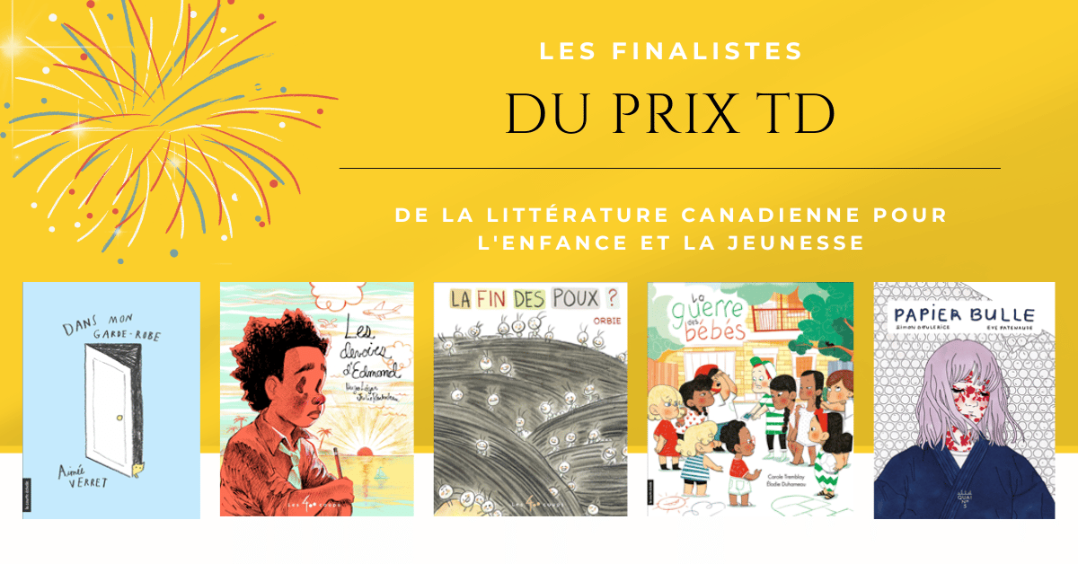 Depuis 2004, le Prix TD est décerné à un livre jeunesse de grande qualité, autant par les textes que par les illustrations, et qui se démarque par son originalité. Créé par le Centre canadien du livre jeunesse et le groupe financier Banque TD, le Prix TD est le plus généreux des prix au Canada remis aux créateurs et créatrices de livres destinés aux jeunes. Le lauréat reçoit une bourse de 50 000$ et la maison d’édition du livre gagnant reçoit 2500$ à des fins publicitaires. Quant aux créateurs et créatrices des quatre livres finalistes, ils se partagent 10 000$.
