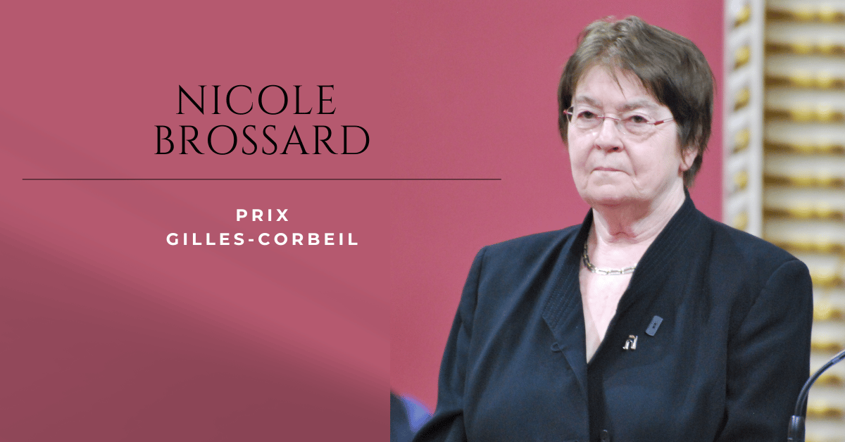 Poète, autrice, éditrice et militante, Nicole Brossard a écrit plus d’une trentaine de livres, particulièrement de la poésie. Elle a remporté à deux reprises le Prix du Gouverneur général : en 1974 pour Mécanique jongleuse et en 1984 pour Double Impression. Elle a été couronnée en 1991 par le prix Athanase-David et a été faite membre de l’Académie des lettres du Québec, nommée officière de l’Ordre du Canada, ainsi que compagne de l’Ordre des arts et des lettres du Québec. Cofondatrice de La Barre du jour, une revue qui présente une autre vision de la poésie de l’époque, Nicole Brossard est une militante de la première heure auprès de la communauté LGBTQ+. En 1982, elle a fondé la maison d’édition L’intégrale éditrice, qui se consacre aux publications féministes.