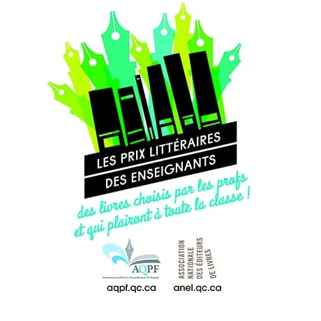 Lors du congrès de l’Association québécoise des professeurs de français (AQPF), les Prix littéraires des enseignants de français 2016 ont été remis pour la huitième année par l’AQPF et l’Association nationale des éditeurs de livres (ANEL). Les titres primés ont été choisis par les enseignants qui transmettent, à l’aide des livres, valeurs, soif de curiosité et amour des mots tout en suscitant la réflexion et la discussion. Les auteurs primés reçoivent chacun une bourse de 500$ tandis que leurs éditeurs bénéficient d’un crédit de 500$ chez le papetier et l’imprimeur.