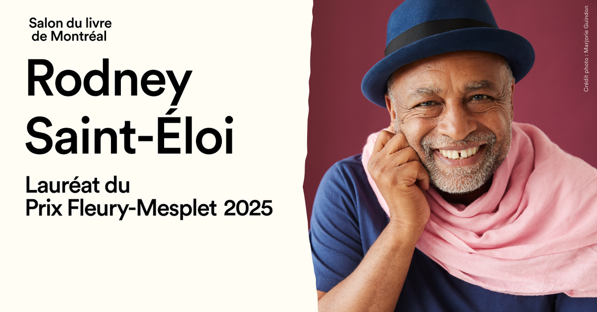 Le conseil d’administration du Salon du livre de Montréal, sous les recommandations du comité du prix Fleury-Mesplet, a proclamé Rodney Saint-Éloi, lauréat de l’édition 2025, saluant sa contribution au dynamisme littéraire québécois. Rodney Saint-Éloi a fondé la maison d’édition Mémoire d’encrier en 2003, participant ainsi à diversifier la littérature publiée au Québec. Son approche, multiculturelle, a permis aux lecteurs et lectrices de découvrir d’autres voix, d’autres façons de raconter et de mettre en contexte ces ouvrages de l’ailleurs dans lesquels on se reconnaît, malgré les différences. Au fil du temps, Mémoire d’encrier a su rejoindre un plus grand public encore, en offrant des livres écrits par des autrices et des auteurs issus de toutes les diversités. Plusieurs de ces écrivaines et écrivains ont d’ailleurs remporté des prix ici et là, notamment il y a quelques semaines le Prix littéraire du Gouverneur général pour Les déterrées de Katia Belkhodja.