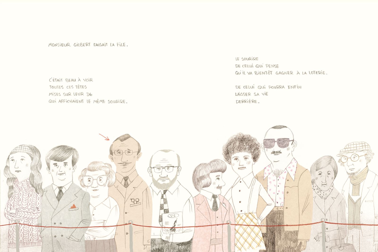 Ce roman graphique (signé par Stéphanie Lapointe, gagnante de Star Académie) comprend 96 pages illustrées avec tout le talent et la douceur des collages de Rogé. Dans cette œuvre métaphorique, on suit l’histoire d’une jeune fille qui gagne au Concours-de-qui-ira-sur-la-lune. De la navette qui la rapproche des étoiles et de la lune, elle pense à son grand-père, tout en bas, sur Terre, et réfléchit à ce qu’elle veut réellement.