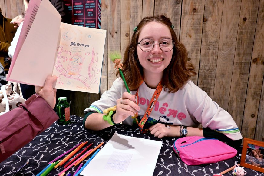 Quarante ans plus tard, on sent le même enthousiasme chez la jeune autrice Catherin, qui publiait l’automne dernier son premier album Momm aux éditions Pow Pow et dont c’est le baptême d’Angoulême. « Participer au festival, c’est comme se retrouver aux Olympiques ou aux Oscars. Ma première prise de contact avec le lectorat d’ici est formidable », affirme la Drummondvilloise d’origine flanquée d’un immense sourire et d’un chandail à l’effigie d’Angoulême qu’elle a confectionné pour l’occasion. Que pense-t-elle rapporter de cette expérience? « Tellement d’amour. J’absorbe tout, je profite du moment présent. » Sentiment d’émerveillement que partage Aude Fourest, jeune autrice québécoise originaire de France qui signait l’automne dernier Le chahut qui vient à L’Oie de Cravan. « Je me prends une claque quand même. Je n’avais pas conscience de l’ampleur du festival. Je suis heureuse de faire plus ample connaissance avec mes collègues québécois de la délégation, mais aussi d’avoir l’opportunité de rencontrer des artistes que j’admire comme Anouk Ricard, qui vient tout juste d’être sacrée Grand Prix d’Angoulême. »