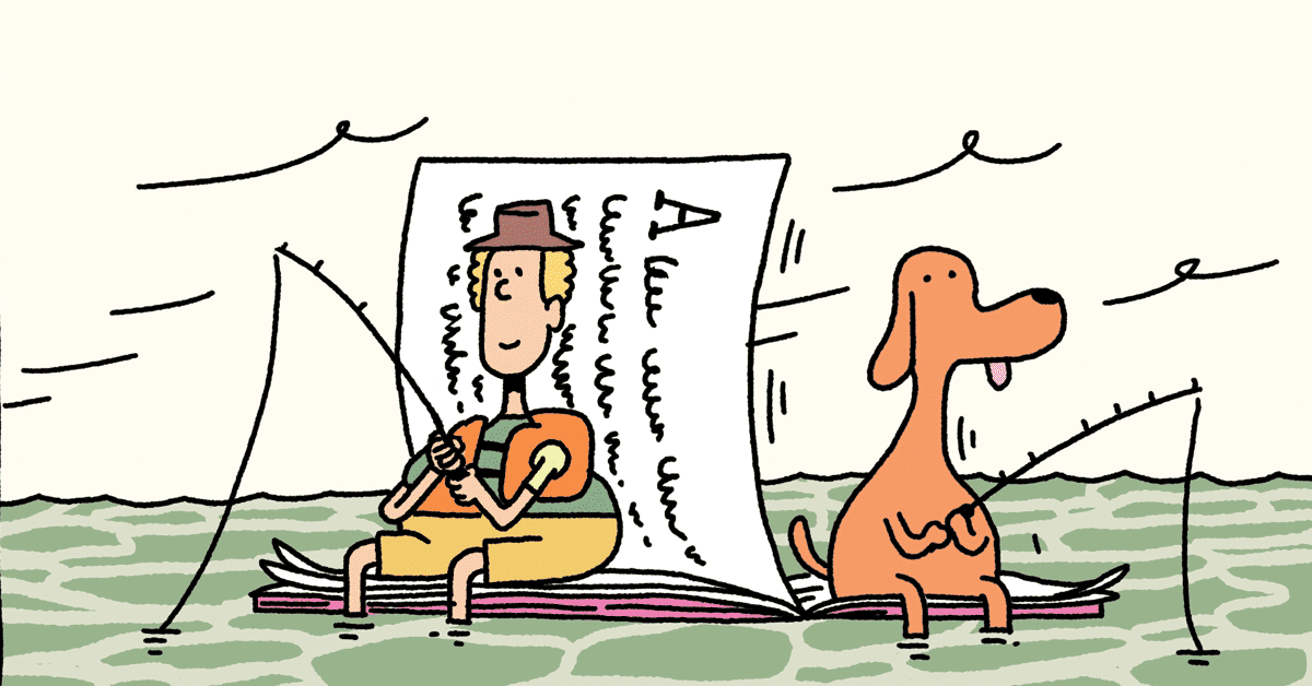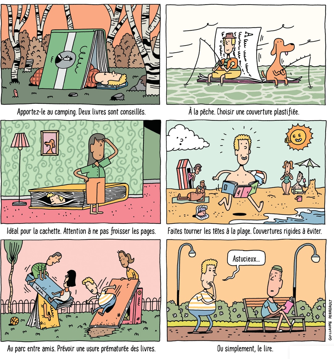 On a demandé à l’illustrateur Guillaume Perreault de créer pour Les libraires une page rafraîchissante, qui nous fera patienter jusqu’à sa prochaine parution. Régalez-vous!