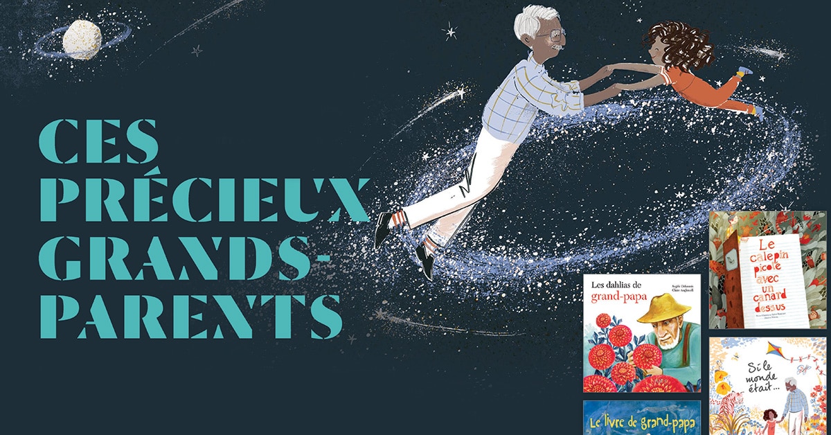 Certains grands-parents savent parfois user de ruse avec adresse pour émerveiller leurs petits-enfants. Dans Le livre de grand-papa (Bayard), on découvre un petit garçon fasciné par les histoires nombreuses, rocambolesques et variées de son grand-père. Toutes ses histoires tiennent dans un livre, un vieux bouquin usé, sans images, le seul et unique livre d’ailleurs qu’il y avait dans la maison des grands-parents. On lit cet album avec un sourire en coin : c’est si beau de voir un petit-fils et son papi partager une telle passion! Et à la toute fin (attention, divulgâcheur!), on comprend toute la magie, encore plus puissante, qui unit les deux lorsque, rendu à 7 ans, le petit arrive par lui-même à lire le fameux livre… Un almanach? Qui parle de semences et de lune? Mais où sont les histoires merveilleuses que racontait son papi?! On apprend que si ce dernier ne savait aucunement lire, il n’en était pas moins doué comme conteur pour autant! Un album génial pour aborder les différences entre générations, pour parler de l’éducation et de l’amour d’un grand-papa pour son petit-fils.
