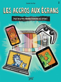 Puis, Les accros aux écrans d’Isabelle Gauthier (Victor et Anaïs) s’adresse à un public un peu plus vieux puisqu’il nous entretient sur presque tous les types d’écrans et les réseaux sociaux, davantage susceptibles d’être utilisés par des jeunes à l’aise avec l’écriture. Il présente une approche amusante, mettant en scène des personnages de contes classiques populaires.