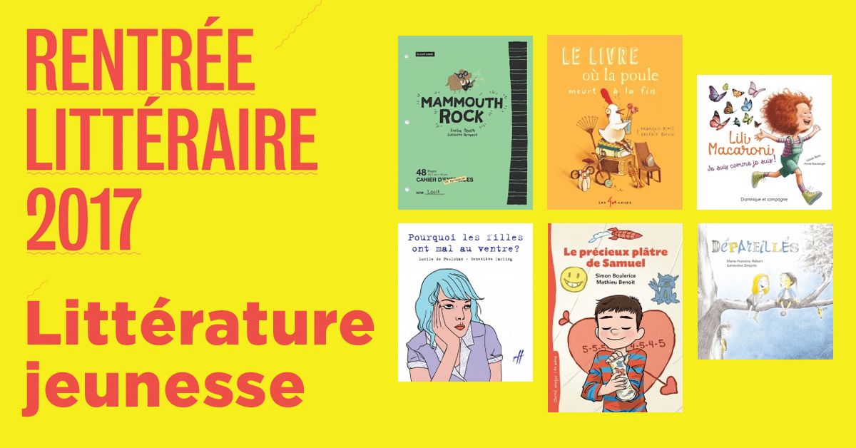 d’entraide et d’amitié. Grâce aux crayons de bois de l’illustratrice primée utilisés sur 72 pages, on suit Madame Blaireau dans son ascension quotidienne d’une montagne, jusqu’à ce qu’un chat souhaite lui aussi voir le sommet. Une nouvelle parution d’Alain M. Bergeron est toujours la bienvenue : cette fois, c’est notamment chez Hurtubise avec La nouvelle vie d’Antoine Collins, l’histoire d’un garçon de 12 ans qui passe d’inconnu à super vedette grâce à ses talents de musicien et de chanteur diffusés sur le Web. Et que serait une rentrée sans un Simon Boulerice? C’est chez Bayard Canada qu’on retrouve la coqueluche, avec Le précieux plâtre de Samuel : en raison de son poignet fracturé, Anna dessine sur le plâtre de son ami un cœur dans lequel est inscrite une série de chiffres. Samuel cherchera à découvrir ce que tout cela signifie. Après Eux, après Nous, voilà la fin d’un triptyque émérite qui raconte l’infernale spirale