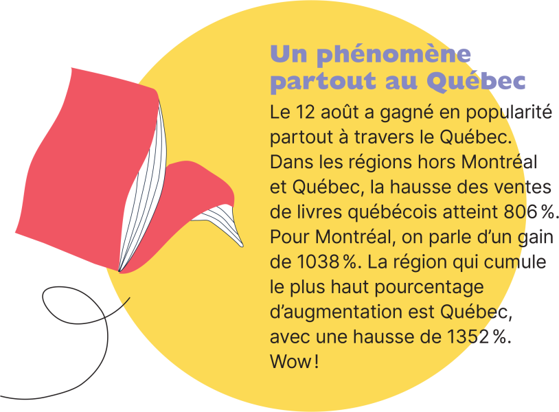 Le succès du 12 août est envié. C’est pourquoi on retrouve maintenant d’autres initiatives qui, bien qu’elles n’aient pas encore suscité un engouement aussi monstre que l’événement estival pour le livre québécois, se démarquent d’année en année. On parle notamment de la journée « Le 25 septembre, j’achète un livre franco-ontarien ». Le milieu culturel s’est également mobilisé en mettant sur pied en 2025 l’initiative « Le 12 février, j’achète un billet pour une sortie culturelle québécoise ». Pour sa première édition, le succès s’est fait sentir : par exemple, pour le Théâtre La Bordée à Québec, les ventes ont connu une augmentation de 990% par rapport au 12 février de l’année précédente. Oui, le 12 août change le visage de la culture, bien au-delà du seul domaine littéraire, et participe à un grand mouvement de fierté envers nos créateurs d’ici.