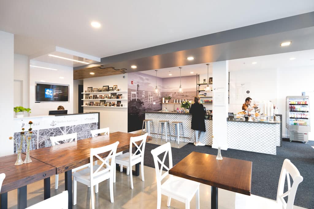 Le succès de la maison repose avant tout sur la mise en commun des forces de tout un groupe. « Je ne peux pas parler de Québec Amérique sans parler de l’équipe. On a une équipe jeune — j’ai longtemps été la plus jeune, là je le suis un peu moins —, affirme l’éditrice dans un éclat de rire. Des gens issus des études en littérature ou qui viennent de la librairie et qui sont passés de l’autre côté de la force, comme je dis souvent! » Elle insiste sur le fait que l’édition est d’abord une rencontre, avec l’auteur, avec le lecteur et avec tous les intervenants nécessaires entre les deux, et qu’il importe donc que celle-ci soit faite d’un maillage étroit. C’est vrai aussi des autres organisations dans lesquelles Caroline Fortin s’implique. Elle est présidente de Francfort 2020, fait partie du conseil d’administration du Salon du livre de Montréal, est copropriétaire du distributeur Dimedia et supporte les éditions Cardinal dont elle possède la part majoritaire. S’ajoute à cela l’ouverture, il y a cinq ans, du café Chez l’Éditeur qui a dû fermer en temps de pandémie, mais qui compte reprendre du service sous peu. Encore là, l’importance de la rencontre est au cœur de cette idée. Permettre aux gens de se sentir inclus dans l’univers éditorial souvent perçu comme hors de portée, d’en faire un lieu de proximité où le livre est à l’honneur dans le quotidien.