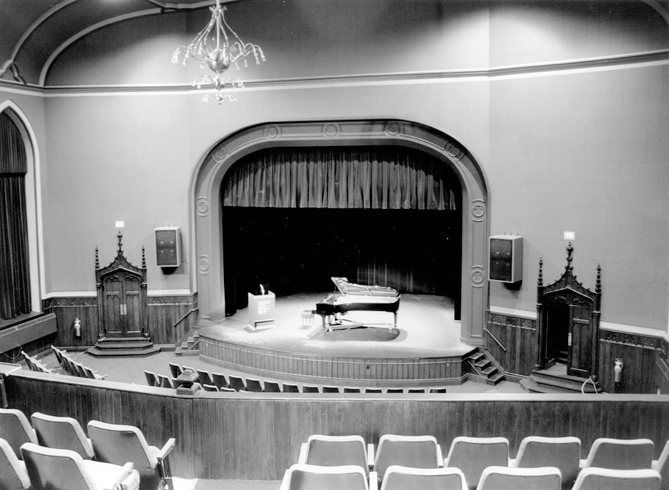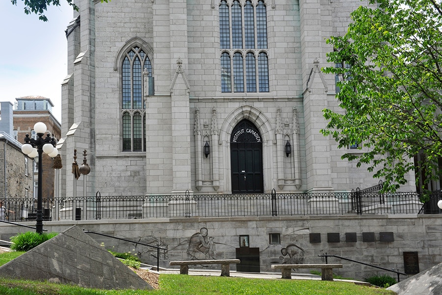 Sur l’esplanade où se rejoignent les rue Cook et Saint-Stanislas, je fais une pause à l’un des bancs de pierre, considérant le temple néogothique où se trouvait jadis la « Salle de L’Institut » (1944-1999). À combien de spectacles ai-je assisté ici, quand j’étais gamine? Il me fallait toujours de bonnes grosses minutes pour cesser d’être impressionnée par la splendeur austère de la salle, où je me faisais souvent disputer à force de m’amuser dans l’escalier en colimaçon du balcon. Je me sentais bien petite — jusqu’à ce que la musique m’entraîne dans l’innommable. Ce lieu m’emportait dans des émotions trop grandes pour moi, me subjuguant par ses grandes envolées lyriques, avant de me laisser à la sortie, chiffonnée par tout ce qui m’avait traversée et qui me laisserait longtemps silencieuse.