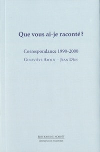 Que vous ai-je raconté? Correspondance 1990-2000 / Geneviève Amyot et Jean Désy, Du Noroît, 472 p., 27$
