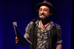 Le jour de ses 7 ans, Fredric Gary Comeau reçut en cadeau une guitare et une machine à écrire : visiblement, ses parents avaient compris quelles étaient ses passions! Devenu auteur-compositeur-interprète et auteur de quinze recueils de poésie et de deux romans, cet artiste originaire de la baie de Nepisiguit en Acadie vit maintenant à Montréal. Son recueil Souffles lui valut d’être en lice au GG, alors qu’il fut lauréat du prix Jacques-Cartier pour son roman Vertiges, que Nicole Brossard a couvert d’éloges : « Avec ce premier roman, Fredric Gary Comeau nous offre, dans une langue habitée d’une parfaite tension poétique, une constellation de destins dans laquelle se déploie la modernité d’une écriture et d’un art de la vie devant soi, quels que soient les vertiges et les obstacles. Un très beau roman comme une percée de vie dans l’espace contemporain qui nous emporte. » Si ce roman choral mettant en scène huit personnages nous transporte aux quatre coins du globe, on souligne l’arrêt qui y est fait à Moncton. L’amour est au cœur de ses deux plus récentes parutions, que ce soit dans le roman Douze chansons pour Évelyne (XYZ), qui raconte un poète et chanteur acadien brisé dans un road novel qui s’étirera jusqu’au Japon, ou encore dans M’inonde (Les Écrits des Forges), qui est également un voyage dans de grandes villes du monde où des miettes d’amour lui ont glissé entre les doigts.