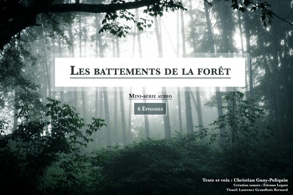 « La forêt est le commencement et la fin. Elle précède les regards, elle leur succédera. Elle est l’épicentre, le nœud, le refuge et la geôle. Elle fascine autant qu’elle effraie. […] Elle est l’envers de ce qui pense : elle est l’instinct. » Voilà le prologue de la minisérie audio Les battements de la forêt, qui contient six épisodes courts, écrits et narrés par Christian Guay-Poliquin.