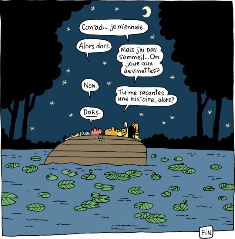 Je ne réfléchis pas beaucoup à l’univers graphique. Ça m’ennuie de faire beaucoup de recherches avant de commencer un projet. Souvent, je ne le fais que parce que l’éditrice me le demande. Je ne dis pas ça parce que je me pense au-dessus de tout ça, c’est plutôt que je suis paresseuse du dessin. Ce sont mes limites qui déterminent ce que je vais dessiner et comment. J’essaie de composer avec les contraintes qu’elles m’apportent.