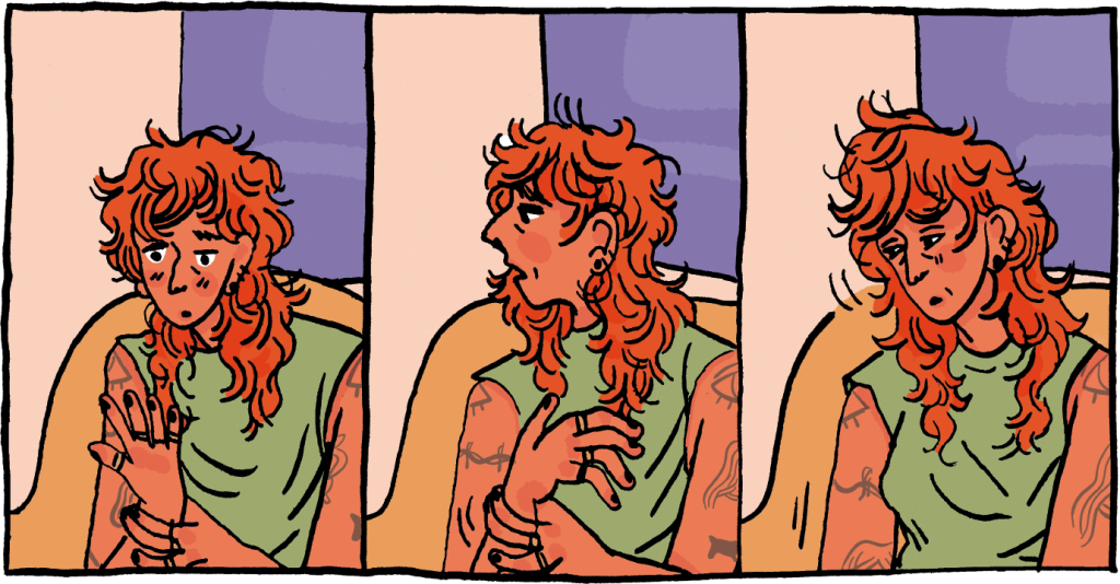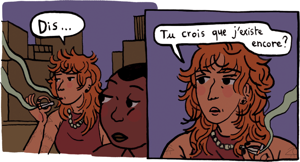 Et s’il est essentiel pour l’expression, le groupe offre également d’accueillir les silences qui délivrent. La bande dessinée est ponctuée de ces moments de vides narratifs qui autorisent aux émotions de prendre de l’ampleur et au sens de se poser. Mirion Malle sait effectivement utiliser les ellipses à leur plein potentiel. En fait, plus qu’un choix esthétique, le silence devient un choix politique : « Je crois très fort qu’on n’a pas besoin de tout dire, de montrer, de décrire, d’appuyer dans les agressions commises envers un groupe opprimé. Parce que lorsqu’on écrit ce genre de scène, on ne les écrit pas pour les gens concernés, mais pour les autres que l’on veut choquer tout en déshumanisant les victimes. »