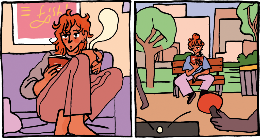 Pour elle, la bande dessinée doit être pensée comme un safe space, écrit avant tout pour les personnes concernées, avec bienveillance et douceur, afin qu’elles se sentent entendues et légitimées. Cette façon de travailler le récit crée un espace salutaire qui analyse les émotions au lieu de les exploiter et qui offre une parenthèse essentielle où l’on développe la thématique de la reconstruction, l’après de la violence, comme une possibilité. C’est ce même parcours que suit Clémence qui, tout au long des pages, se dévoile à petite touche, avec son groupe, ses amis, son amoureuse, et qui, à son rythme, reprend contact avec sa joie et avec la force de sa colère. Une colère qui, lorsqu’elle est débarrassée du désespoir et de la peur, se pare du rouge joyeux de la flamme libre qui n’est plus un incendie, mais bien un lance-flammes.
