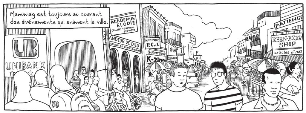 Pour sa part, Young réussit à reproduire l’effet immédiat et jeté du dessin de carnet dans la réalisation en atelier de Djondjon. Il opte pour une approche documentaire, alternant les planches et arrêts sur images de personnages croisés au hasard de ses pérégrinations. Loin de la carte postale ou de l’imagerie misérabilisme de ce pays qui vit des moments difficiles, l’artiste ventile ses cadrages, dévoilant juste assez des paysages pour nous y plonger sans nous égarer. Bien plus que la découverte de cette foisonnante culture, c’est surtout à sa traversée intérieure que le chasseur de champignons nous invite. Souvent à peine amorcés, les paysages croqués laissent tout l’espace aux lectrices et lecteurs afin de s’y projeter, marchant littéralement à ses côtés.