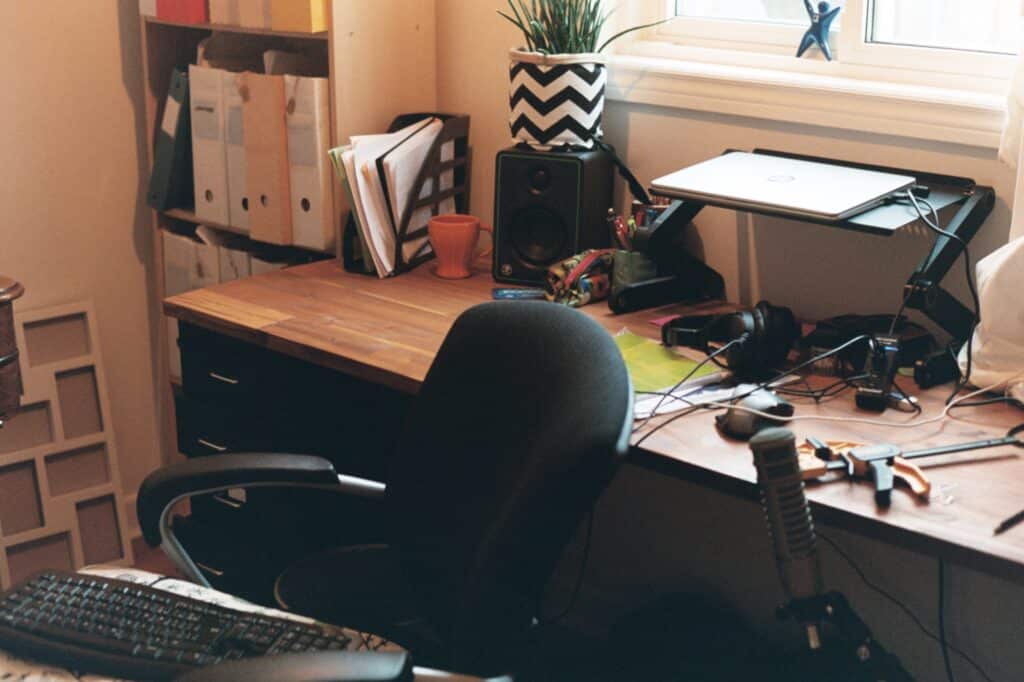 La pluie nous chasse, nous regagnons la maison, son grand silence. Je profite du fait que nous soyons en mouvement pour aller fouiner dans son bureau, qu’une lumière jaune, nue, éclaire. Un petit cheval de bois, relique d’un spectacle, trône sur le dessus d’une étagère; le rideau tient avec ce qui, vu du sol, s’apparente à une pince-étau; le stylo préféré, un Pilot Hi-Tecpoint V5 à encre noire, m’est présenté tel un fidèle camarade. Mille projets foisonnent en ce lieu et Antoine me lance, sans trop sembler y croire, qu’on a déjà convoité ses archives. C’est vrai qu’il y a beaucoup à dire sur sa démarche. Par exemple : la musique — celle des autres — y joue un rôle central. Sa pièce Le gars qui voulait se faire phénix est construite comme un mixtape, son conte urbain « Birthday Girl » est inspiré de la chanson « Ton équilibre » de Salomé Leclerc. Il aime s’imposer des contraintes, qu’il appelle des jambettes, qui le forcent à faire des choix et à définir sa structure, à laquelle il ne déroge presque plus. Il reviendra à quelques reprises sur ses lointaines études en sciences au secondaire pour expliquer la rigueur qu’il s’impose et qui lui permet de vagabonder d’une idée à l’autre avec la confiance de pouvoir se raccrocher à quelque chose de solide.
