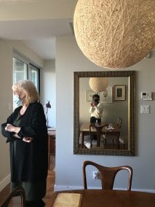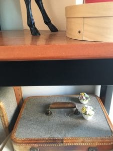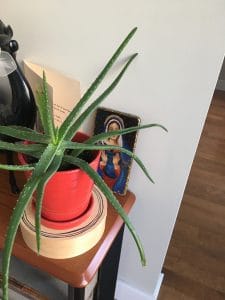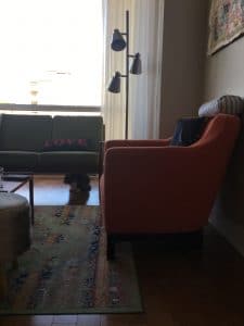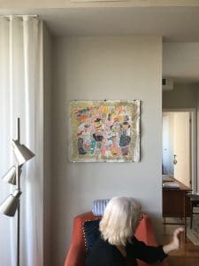 L’appartement de Carole me réjouit. Il est plein de vieux meubles superbement conservés. Je regarde tout. Comme lorsqu’une heure ou deux plus tôt, je roulais sur mon vieux vélo dans Cité-Jardins, je me sens coupable de trop vouloir observer ces lieux dans lesquels je suis une étrangère. Le bois brillant de la console de la télé me donne envie d’y glisser les doigts. Le meuble, me dit-elle, appartenait à une tante. Une petite porte s’y ouvre sur un bar complet. J’hésite mentalement en le datant : années 40? 50? Plus personne dans sa famille n’en voulait, me dit-elle, et elle y a vu tout le potentiel. Un œil qui sait saisir du passé ce qui saura être réactualisé dans le temps présent : voilà encore une preuve de son don. Sur un mur, une œuvre multicolore de Paule Baillargeon. Sur une étagère, un service à thé époustouflant, en verre mauve, qui lui vient de sa mère. Je remarque la bibliothèque : celle-là n’est pas vintage. En vendant la maison où elle vivait pour aménager dans ce condo, plus petit, elle a dû liquider une grande partie de sa collection de livres. Elle en a