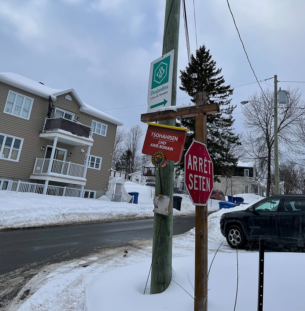 Ici, sur la rue Chef Aimé-Romain, on se trouve au cœur de ce petit espace alloué en 1697 aux quelques centaines de Wendat rescapés des guerres et des épidémies qui avaient décimé leur territoire ancestral dans la région des Grands Lacs. Les familles Sioui, Picard, Gros-Louis, Bastien ont au fil des ans perdu des terres, en ont racheté au gouvernement, ont mis sur pied des institutions, ont bourlingué, ont fait des enfants. À l’époque où Jean Sioui est né, déjà plus personne ne parlait wendat dans la communauté. Et aujourd’hui, c’est à partir des Relations des Jésuites qu’on tente de faire renaître la langue des ancêtres. Ça fait partie des nombreux programmes de revitalisation de la culture et des traditions que bien des Premières Nations ont créés afin de contrer les effets néfastes de la colonisation et de l’assimilation forcée. À l’époque où Jean Sioui grandissait, dans la « réserve », on allait à l’école chez les frères catholiques, on s’habillait propre, on priait en latin. Et on ne parlait que français.