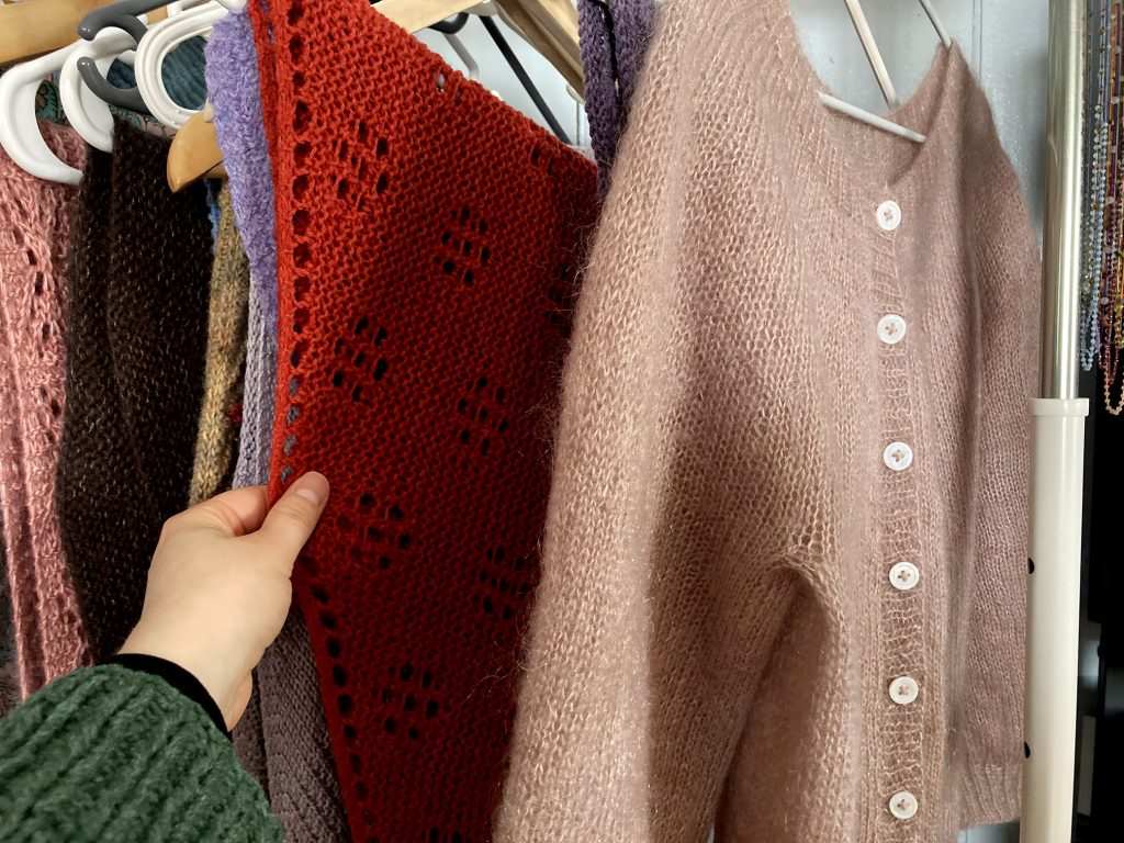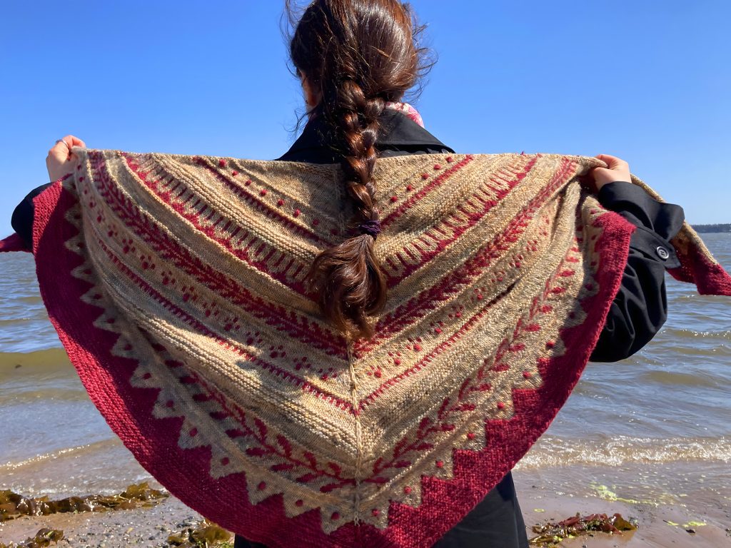 Or, l’apprentissage d’une discipline n’est pas qu’une thématique littéraire pour Perrine; c’est un véritable processus de création, concret, une expérience du monde, de la matière, par lequel naît l’œuvre. Pendant la phase de recherche pour son roman en chantier, elle s’est initiée à la teinture végétale, au tissage, et a beaucoup étudié les textiles au XVIIIe siècle. Elle a tricoté de nombreuses pièces, dont certaines, monumentales, sont tout simplement éblouissantes. Pour Gens du Nord, elle a pris quelques leçons d’irlandais en ligne et a elle-même écrit, sans faute selon mon relecteur irlandais, précise-t-elle en riant, le chapitre qui contient des passages dans cette langue gaélique. Pendant l’écriture de Malabourg, elle a participé à un atelier de création de parfums et a appris à manipuler des essences.