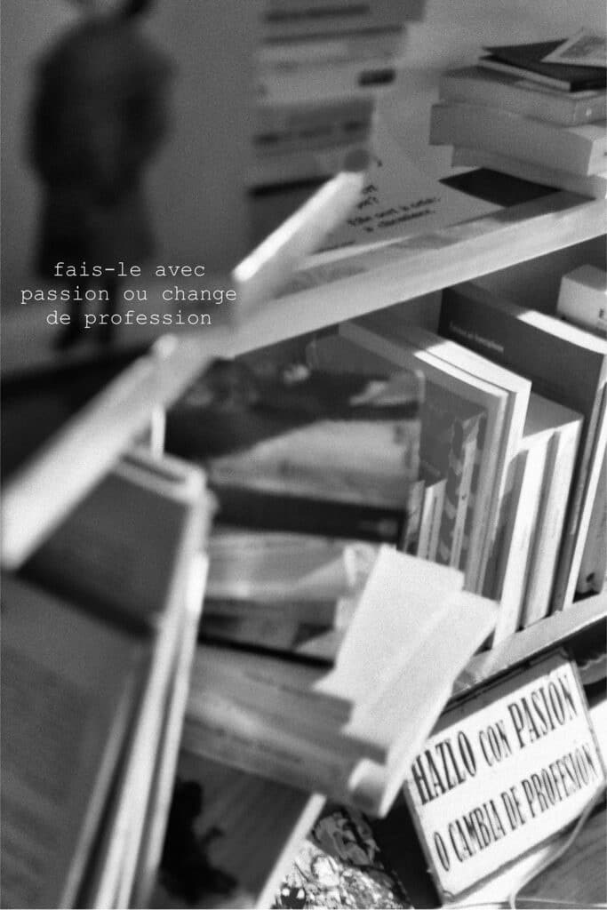 Elle me dit que son ancienne profession de libraire lui fait ranger ses livres comme si elle s’apprêtait à les présenter au monde.