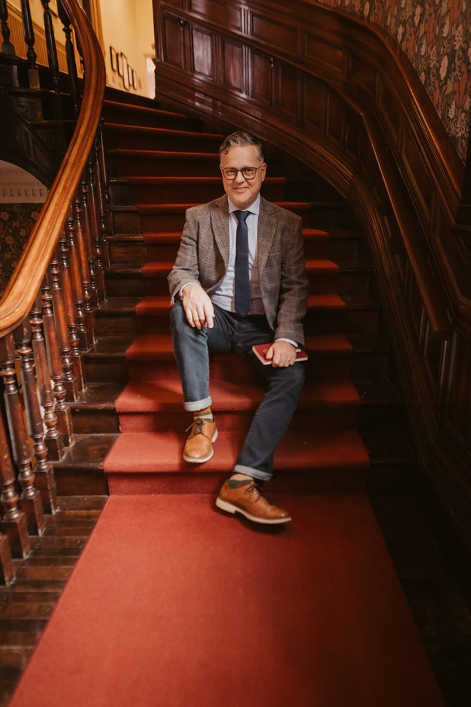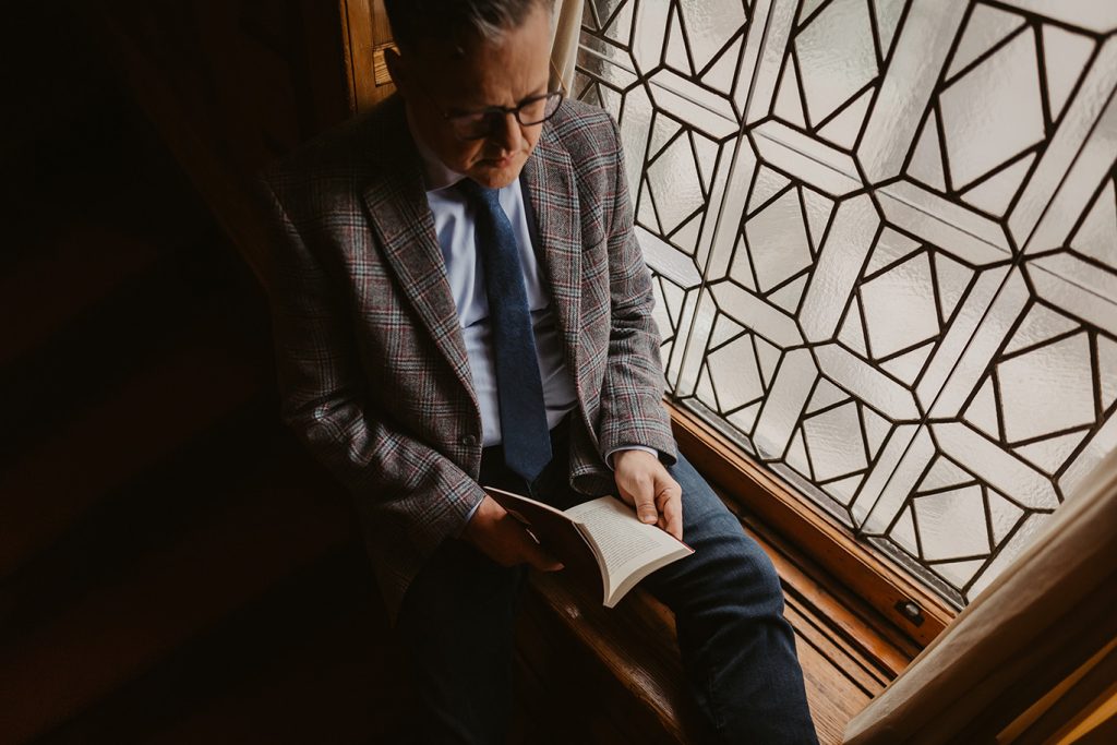La salle de bal du Faculty Club est remplie. L’endroit nous offre un voyage dans le temps. Des lustres pendent du plafond, les murs sont tendus de papier peint et des portraits de femmes fin-de-siècle semblent nous observer. Un octogénaire avec un nœud papillon s’avance vers nous et dépose deux verres de vin blanc sur notre table. Je m’exclame « Que notre joie demeure! » en guise de toast. Un clin d’œil à un leitmotiv présent dans La fiancée américaine.