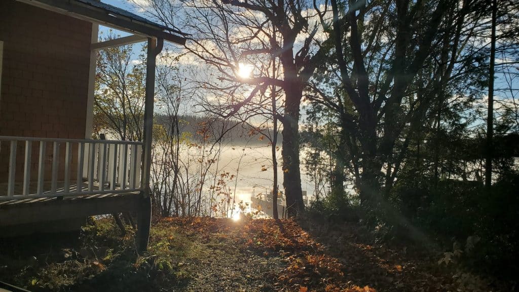 Le matin de mon départ, le soleil se lève sur le lac. La brume s’installe à la surface. Tout brille. C’est féérique. Debout sur la galerie, j’inspire et tente de graver dans mes mémoires mes dernières minutes chez Francine. La lumière, le parfum de l’air du Nord, la brise sur mon visage. On est le 26 octobre, il fait 20 °C. Ça me réveille; il fait quarante degrés de moins au Yukon à ce temps-ci de l’année.