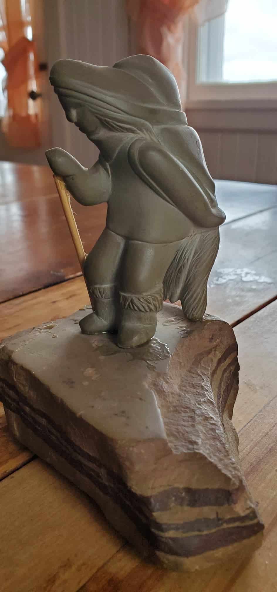 Elle me montre sa pièce préférée : un Innu sculpté dans une pierre de Schefferville. Francine me raconte être partie en train à Schefferville, avec son bébé et son mari, qui était pilote de brousse.