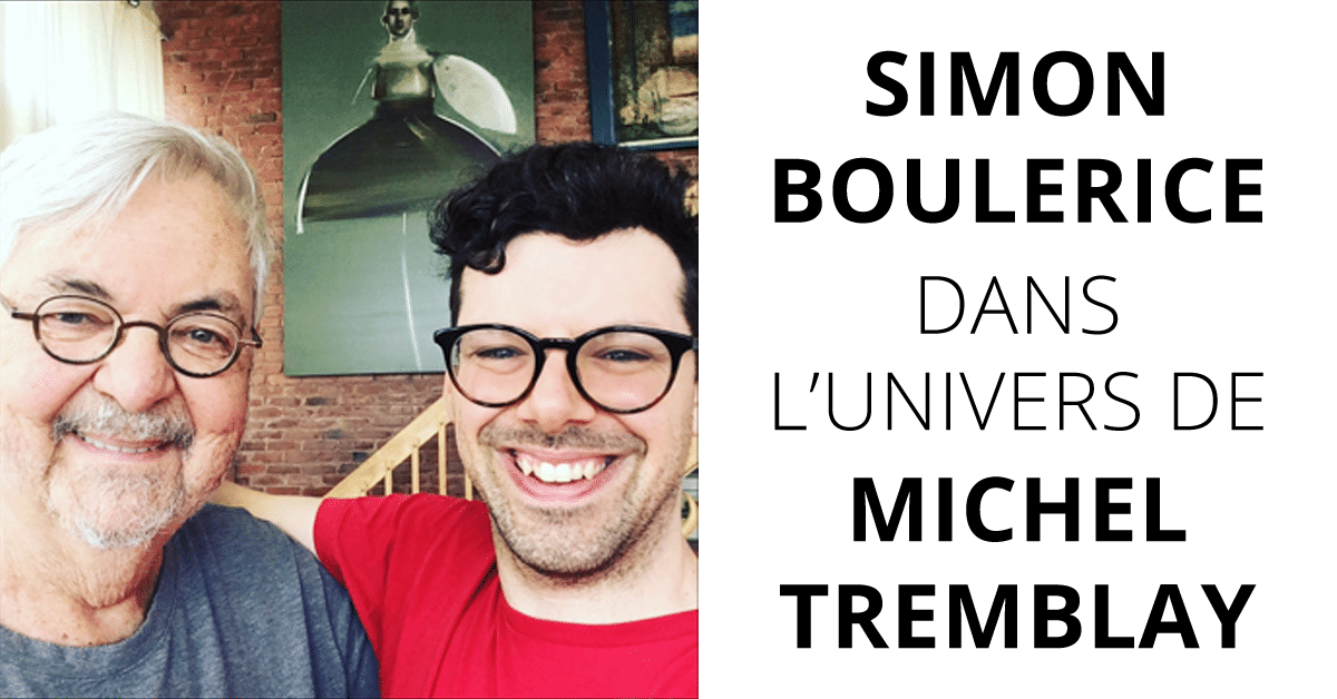 Vous aimez la poésie? Il faut goûter à celle, imagée, de Boulerice. Vous aimez le théâtre? Il faut découvrir le verbe fiévreux dans ses pièces. Vous aimez les romans jeunesse? Il faut découvrir la magie qu’il sait y saupoudrer. Vous préférez les romans pour adultes? Il faut savourer le doux-amer des réflexions de ses personnages. S’il n’est débarqué qu’en 2009 dans le paysage littéraire (avec l’excellent et trop souvent mis de côté Les jérémiades), le touche-à-tout originaire de Montréal a totalement envahi la scène depuis, pour notre grand bonheur. Jumeler ce passionné dont l’imagination féconde semble sans bornes à Michel Tremblay pour cette rencontre allait de soi : comme vous le découvrirez dans le texte, ils ont plus que le théâtre et la littérature en commun!
