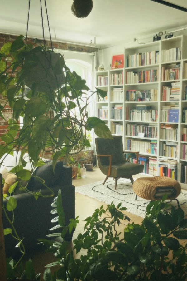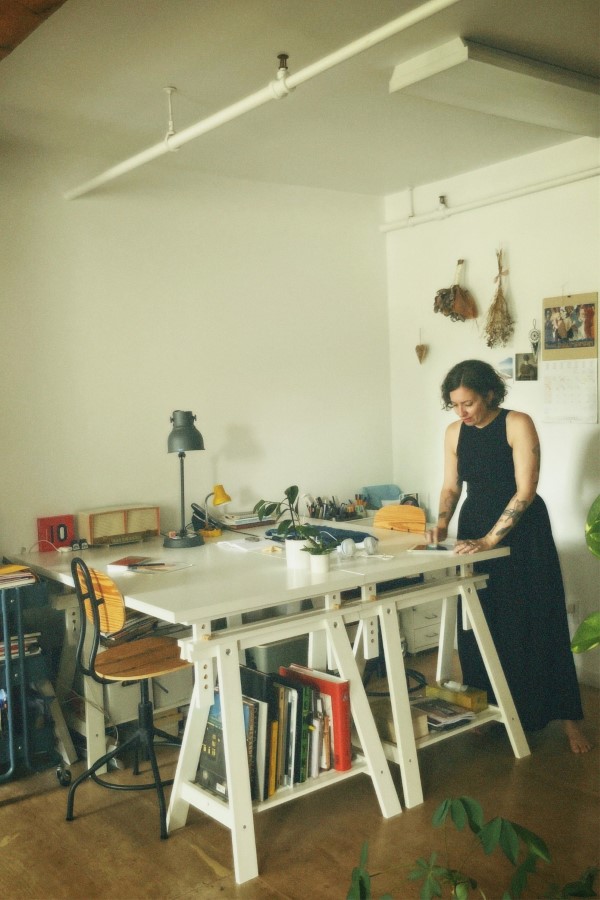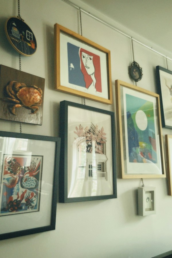 On s’installe sur les divans avec un café et elle me parle de combien elle aime ça ici. De la lumière qui entre, de son bureau trônant dans le coin, de tout de l’art qui se love aux surfaces et aux interstices. Je comprends. Il y a quelque chose de serein dans l’appartement de Valérie. Tout semble tellement à sa place, comme si chaque objet avait une histoire à raconter. C’est un lieu aimé, aimant, qui se remplit du temps qui passe et de ce qu’il accumule au passage.