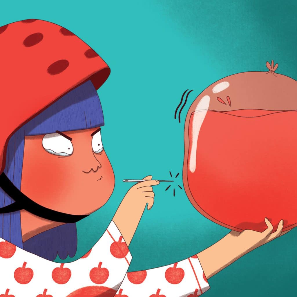 Vous illustrez Les ballons d’eau, album signé Sarah Degonse à La Bagnole qui parle d’hypersensibilité, le tout imagé par des ballons représentant les émotions. Quel a été le plus grand défi lié à l’illustration de cette histoire tout en métaphores?