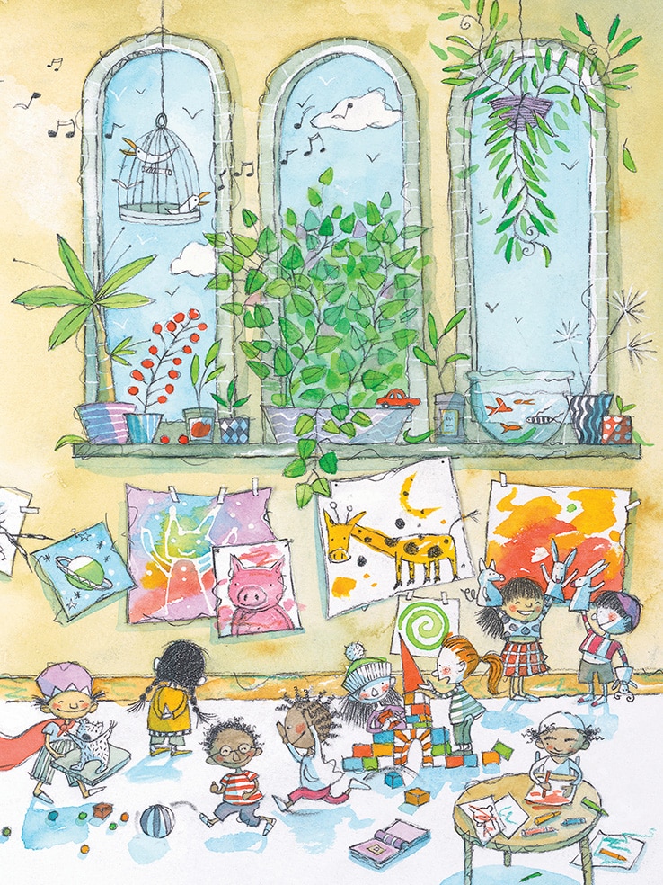 Mon inspiration vient de l’observation minutieuse du monde qui m’entoure. Je prends des notes, je gribouille des esquisses dans mes calepins. D’abord les souvenirs lointains de mon enfance, ensuite, bien sûr, les images de mes enfants lorsqu’ils étaient petits resurgissent… et aussi : l’enfant qui s’accroupit pour examiner une fourmi, une coccinelle ou une abeille qui bourdonne au cœur d’une fleur; l’enfant qui court à toute vitesse parce que ses souliers neufs ont des ailes; l’enfant qui parle à un chat. L’enfant qui met un orteil à la mer et s’enfuit quand une vaguelette lui lèche le pied; l’enfant qui demande « D’où viennent les nuages? D’où vient le vent? »; l’enfant qui rit aux éclats et l’enfant qui a un grand chagrin; les enfants sont partout. Il suffit de voir le monde avec leurs yeux.