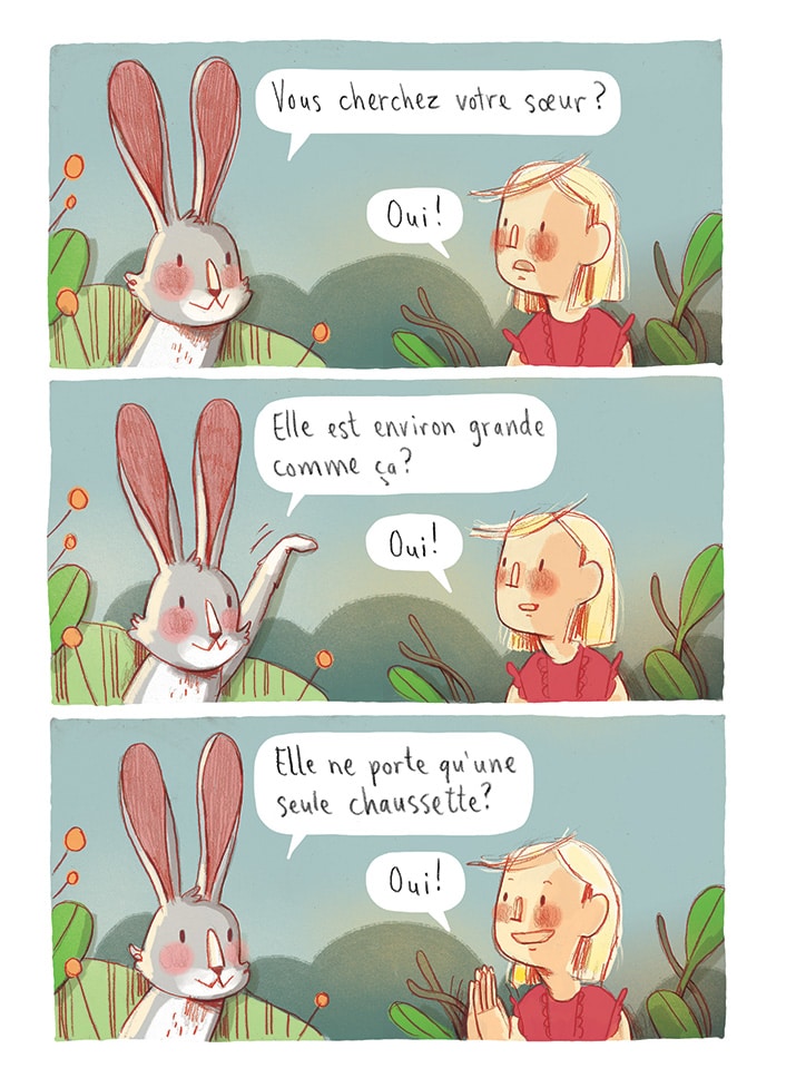 Forte de mon expérience en albums jeunesse et de mon récent passage par la bande dessinée adultes (Rien de sérieux), j’ai voulu combiner les deux en essayant… la BD jeunesse. On peut vraiment venir créer du rythme avec les cases, étirer des moments, créer des ambiances variées. J’aime à penser que le jeune lecteur sera complètement immergé dans mon univers. Qu’il rira. Qu’il aura peur. Qu’il voudra lui aussi jouer aux cartes avec une toast. Et je suis fière de dire que cet album passe le test de Bechdel haut la main.