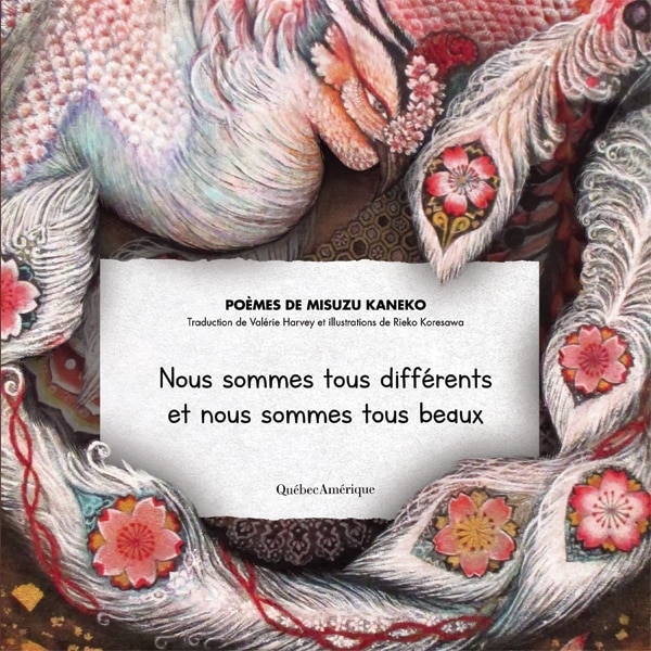 trouvé qu’il y en avait plusieurs qui étaient actuels, qui portaient un beau message », explique l’auteure, justifiant son désir de les traduire en français. Elle pense alors à Rieko Koresawa, une artiste japonaise établie à Québec, pour en signer les illustrations. Ensemble, elles choisissent donc treize poèmes à traduire sur les centaines existant : ceux qui parlent de neige, bien entendu, mais aussi des baleines (soulignons que Valérie vient de Charlevoix, où la belle bleue est souvent de passage), ceux qui sont passés au rang de classique au Japon et ceux qui, artistiquement parlant, inspiraient Rieko Koresawa. En résulte Nous sommes tous différents et nous sommes tous beaux, aux éditions Québec Amérique, un ouvrage qui éclate de couleurs vives et d’illustrations près de l’enfance, et qui présente le texte en français, en écriture japonaise ainsi qu’en japonais phonétique (de quoi ravir les enfants, les curieux et les étudiants en langue!). « Ce n’est pas pour rien qu’on a choisi ce titre. On parle actuellement beaucoup de diversité, on vit avec des gens qui sont différents, mais — et c’est encore la sociologie qui revient — comment fait-on pour tous s’accepter? Misuzu Kaneko arrive à l’expliquer à travers ce poème éponyme, alors qu’elle montre qu’il y a des forces dans ce que l’un possède, des forces que l’autre n’a pas et n’aura peut-être jamais, puisqu’il est simplement différent. Et cela est correct ainsi. Je pense que les enfants sont capables de comprendre tout ça, peut-être même plus que les adultes. »