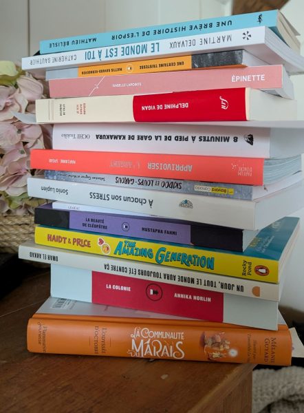 C’est très éclectique! Je lis principalement de la littérature québécoise, mais je n’hésite pas à plonger ailleurs. Voici quelques titres figurant dans ma pile à lire qui défie la loi de Murphy. Je lis par petites bouchées Une brève histoire de l’espoir de Mathieu Belisle. Nous avons reçu tout récemment le livre Le monde est à toi de Martine Delvaux, illustré par Catherine Gauthier. Je n’avais pas encore lu la version originale, mais maintenant maman, j’ai hâte de le découvrir. Avec le bouillonnement de l’actualité, je me dirige aussi vers l’essai et j’ai entendu de très bons commentaires sur Un jour, tout le monde aura toujours été contre ça. À chacun son stress de Sonia Lupien parce qu’il faut bien apprendre à dompter la bête! Et j’entrecoupe tout ça de littérature jeunesse!