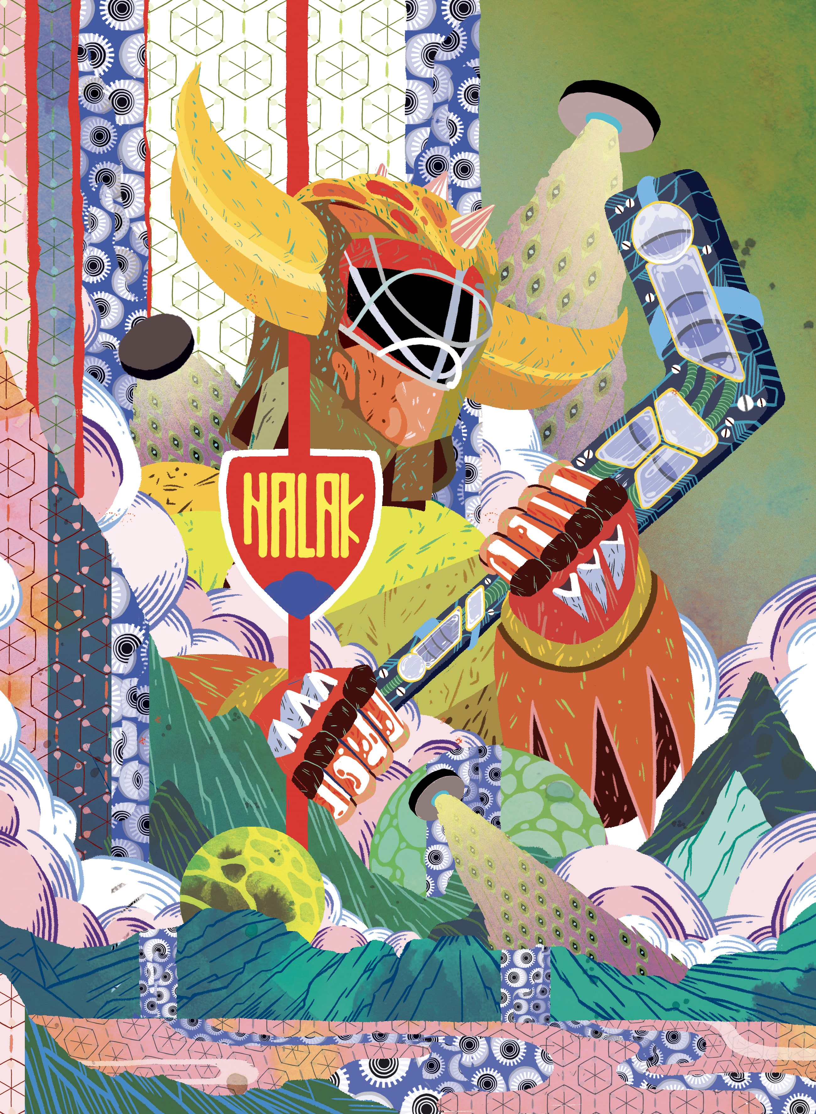 Illustration de l’étiquette du vin Gold Halak, en hommage au gardien de hockey Jaroslav Halák.