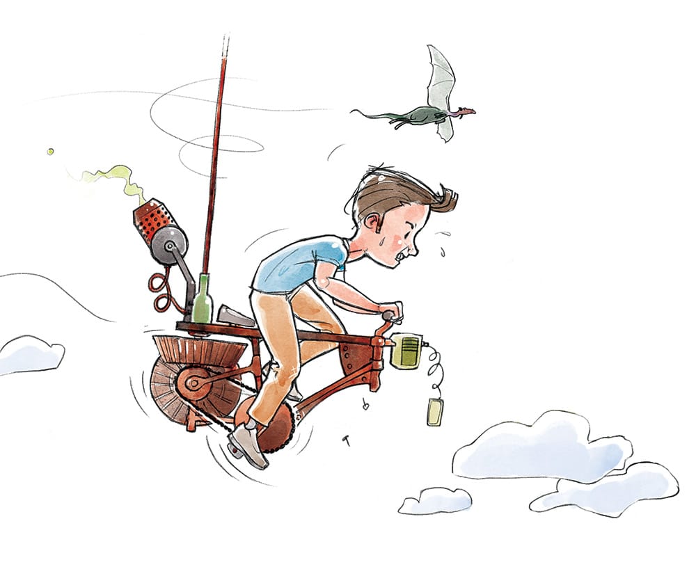 J’adore être inspiré et créer un monde visuel à partir de l’imaginaire de l’auteur. Selon le contexte de l’histoire racontée, j’aime créer des images parfois farfelues, ajouter des détails extravagants ou créer un contexte ou un arrière-plan qui va au-delà de l’intention de l’auteur, mais qui risque d’interpeller le lecteur, surtout le lecteur jeunesse. (Effectivement, je suis moins concerné par le public que par ce qui m’enchante lorsque je dessine.) Mais si je m’amuse, le lecteur s’amusera possiblement. Mais cela étant dit, il reste que mes propres enfants sont mes plus grands admirateurs.